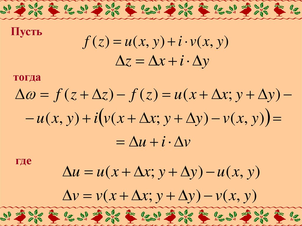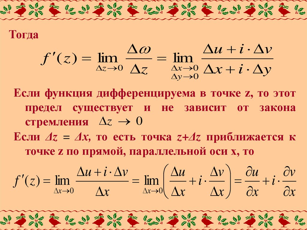 Если Δz = iΔy, то есть точка z+Δz приближается кточке z по прямой, параллельной оси у, то