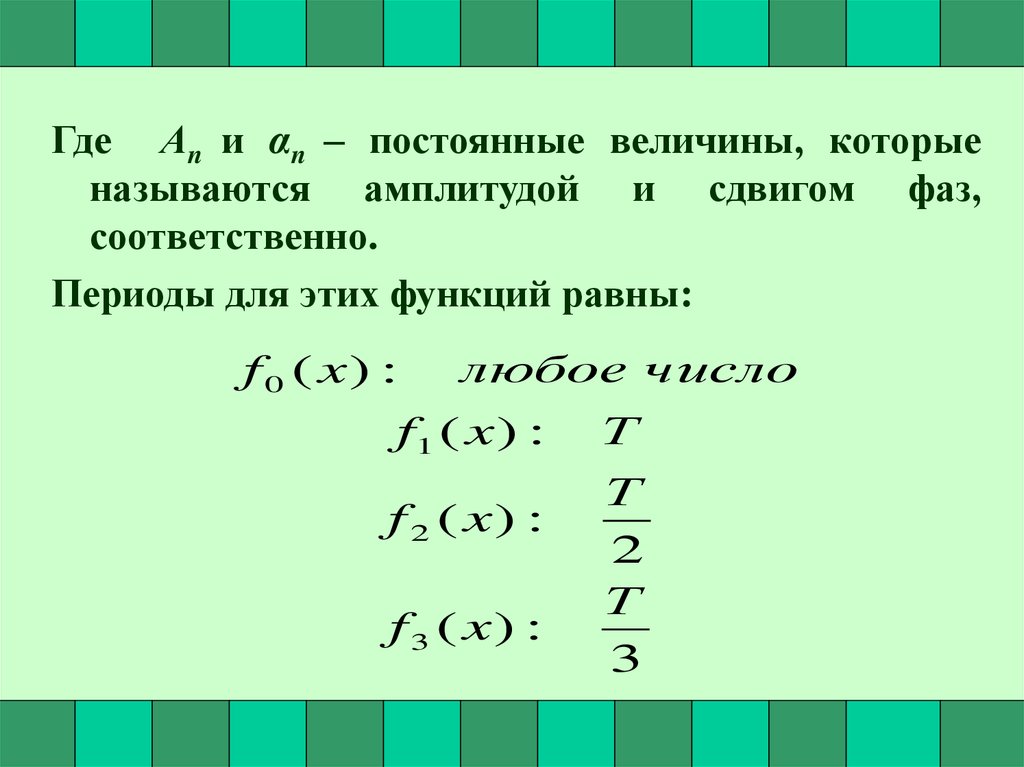 Где Аn и αn – постоянные величины, которыеназываются амплитудой и сдвигом фаз,
