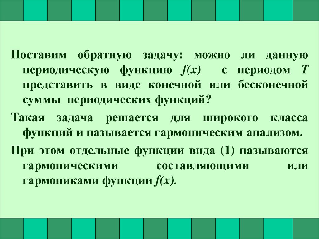 Поставим обратную задачу: можно ли даннуюпериодическую функцию f(x)