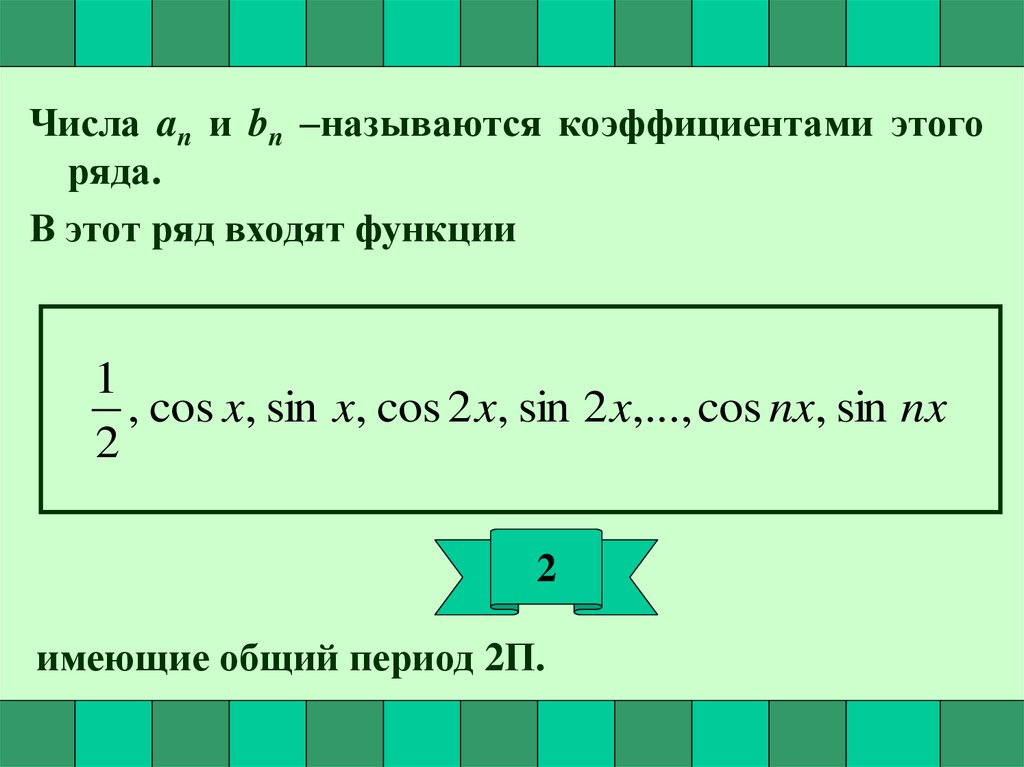 Поэтому, если ряд сходится на отрезке [-П,П], то он