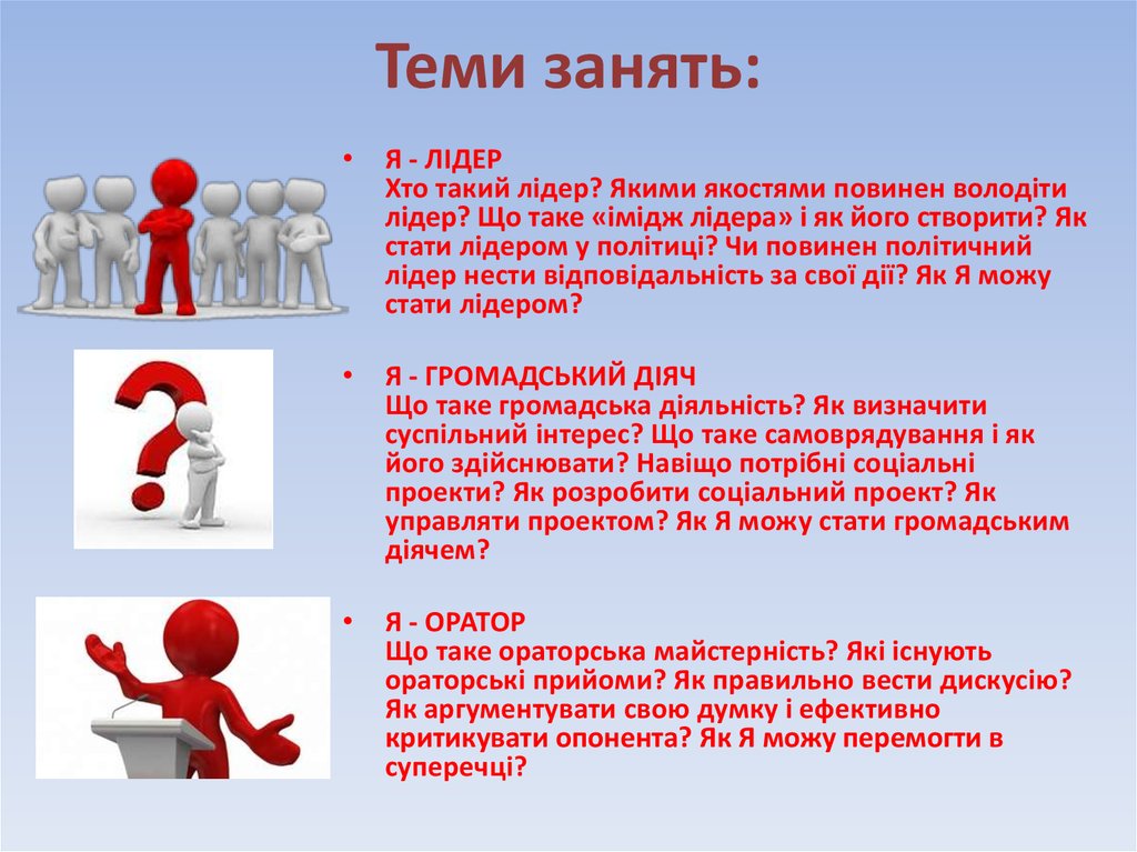 Школа молодого політолога – спрямована на розвитокмолодих людей, яким цікава громадська, політична