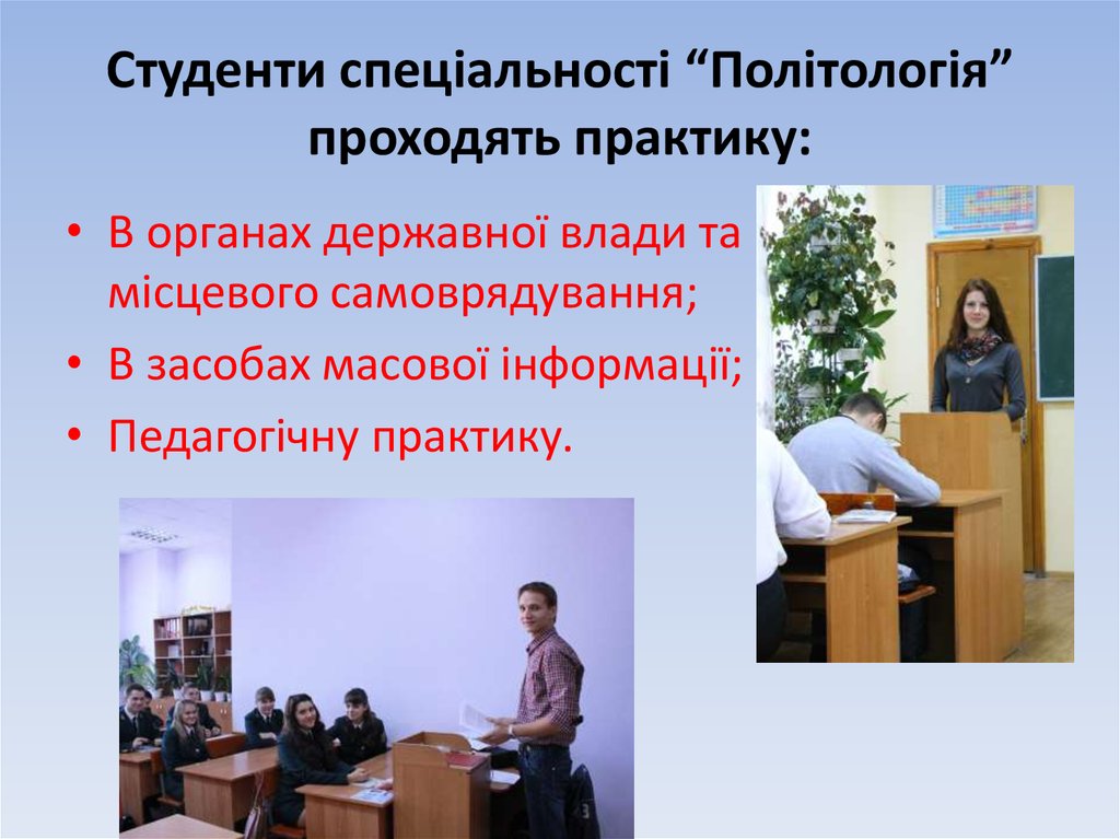 7. Випускники спеціальності “Політологія” можуть працювати на таких посадах :
