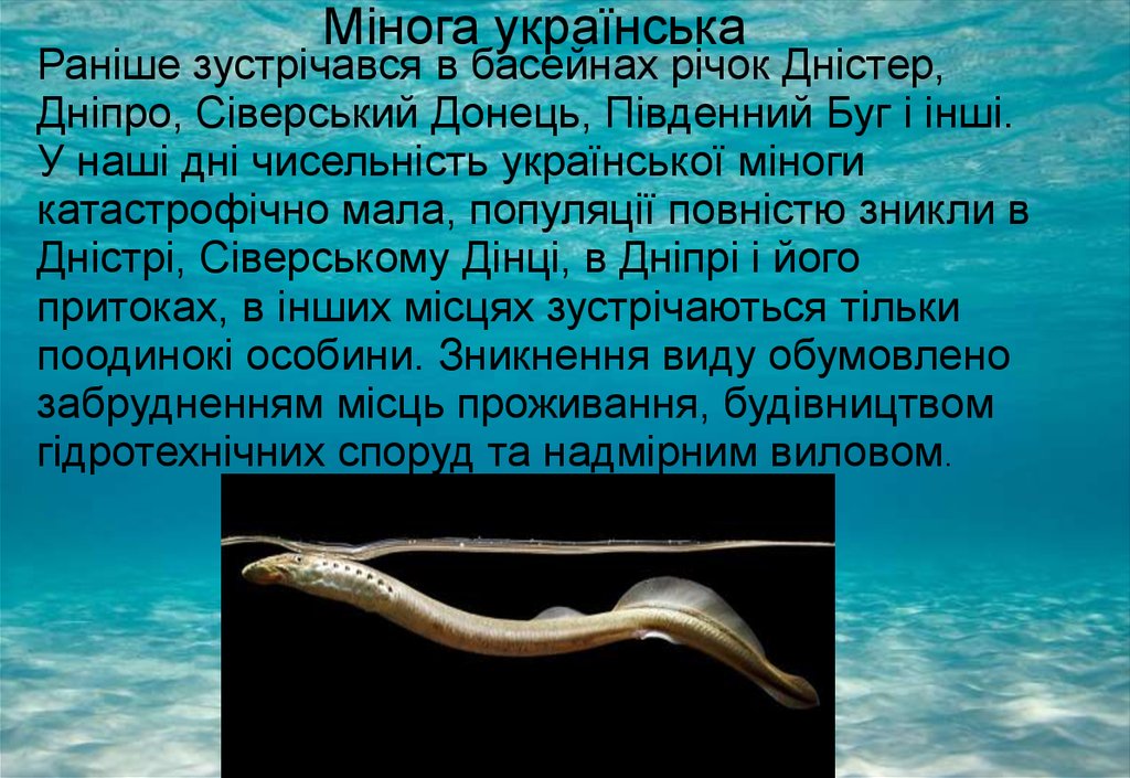 Мінога українськаРаніше зустрічався в басейнах річок Дністер,