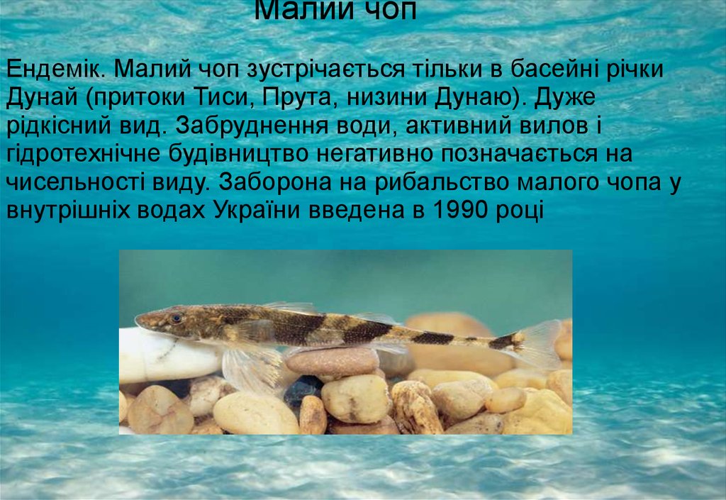 Малий чопЕндемік. Малий чоп зустрічається тільки в басейні річки