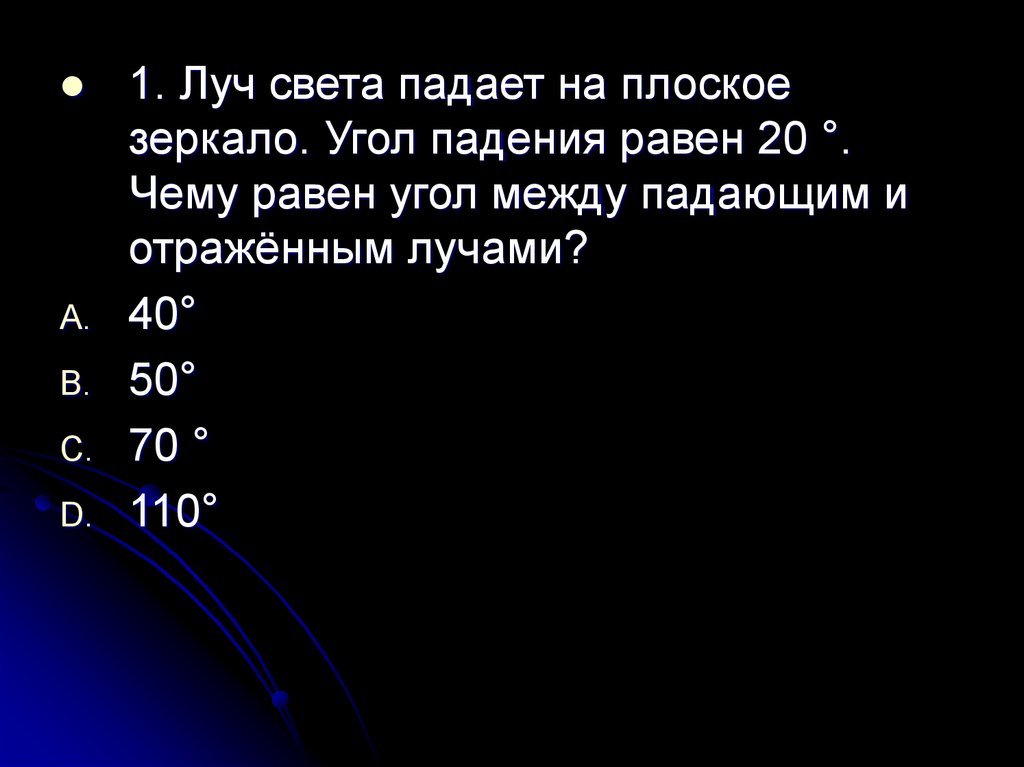 зеркало. Угол падения равен 20 °.