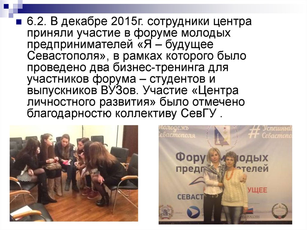 6.2. В декабре 2015г. сотрудники центраприняли участие в форуме молодых