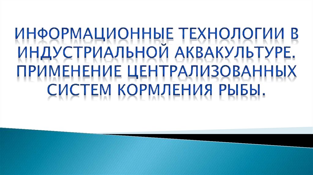 1. Информационные технологии в индустриальной аквакультуре. Применение централизованных систем кормления рыбы.