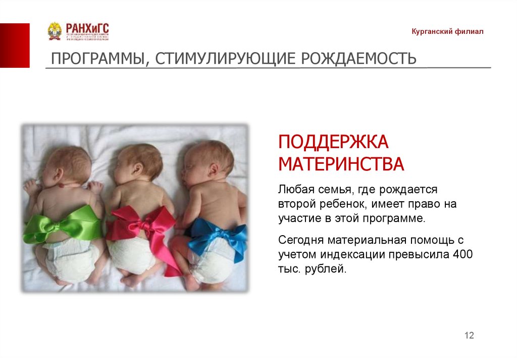 Курганский филиалПРОГРАММЫ, СТИМУЛИРУЮЩИЕ РОЖДАЕМОСТЬ