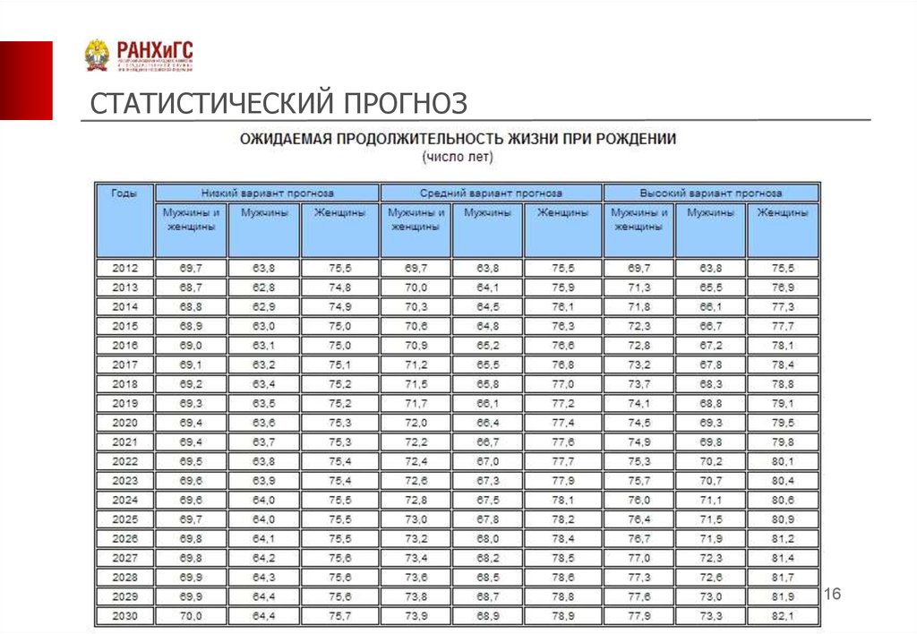 СТАТИСТИЧЕСКИЙ ПРОГНОЗ16