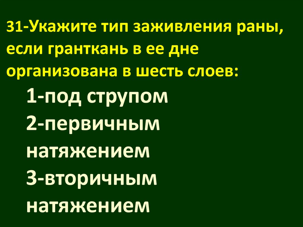 31-Укажите тип заживления раны,если гранткань в ее дне