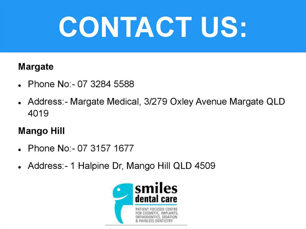 Address:- Margate Medical, 3/279 Oxley Avenue Margate QLD
