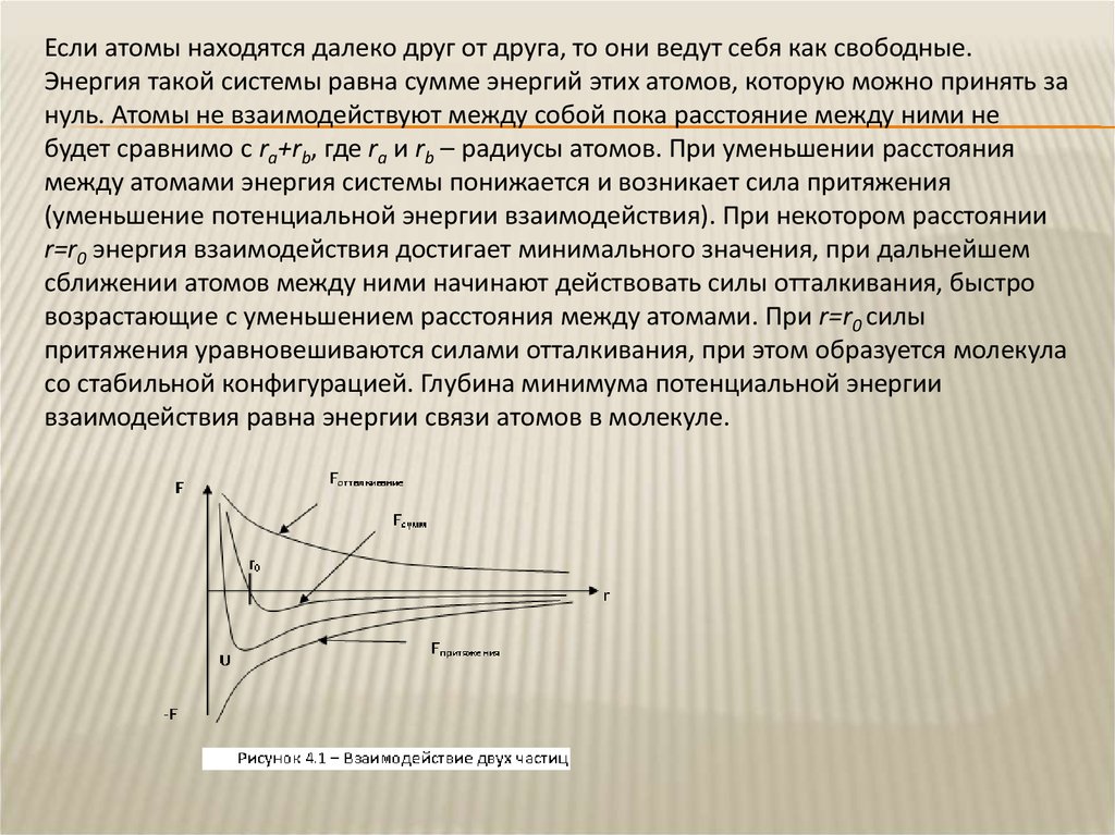 возникновение сил притяжения между атомами. При таком сближении атомов