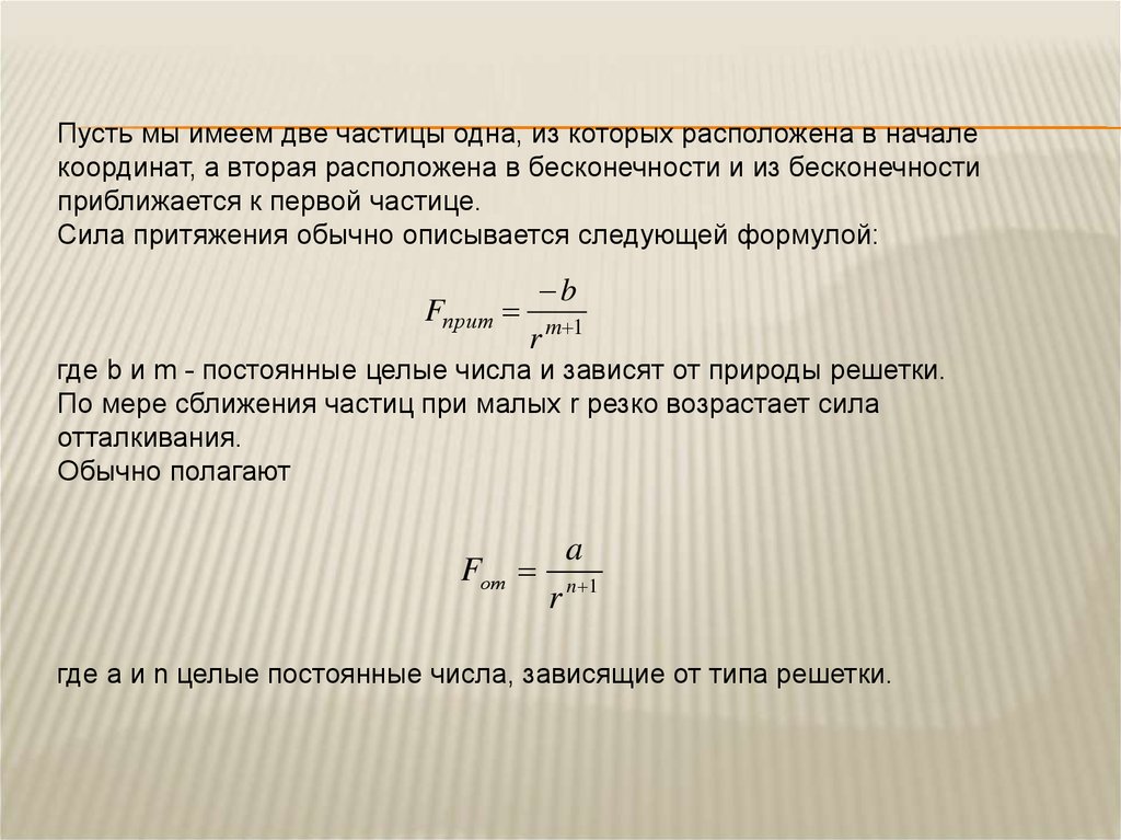 Для того чтобы силы отталкивания при малых расстояниях междучастицами превышали силу притяжения, необходимо чтобы n>m (для