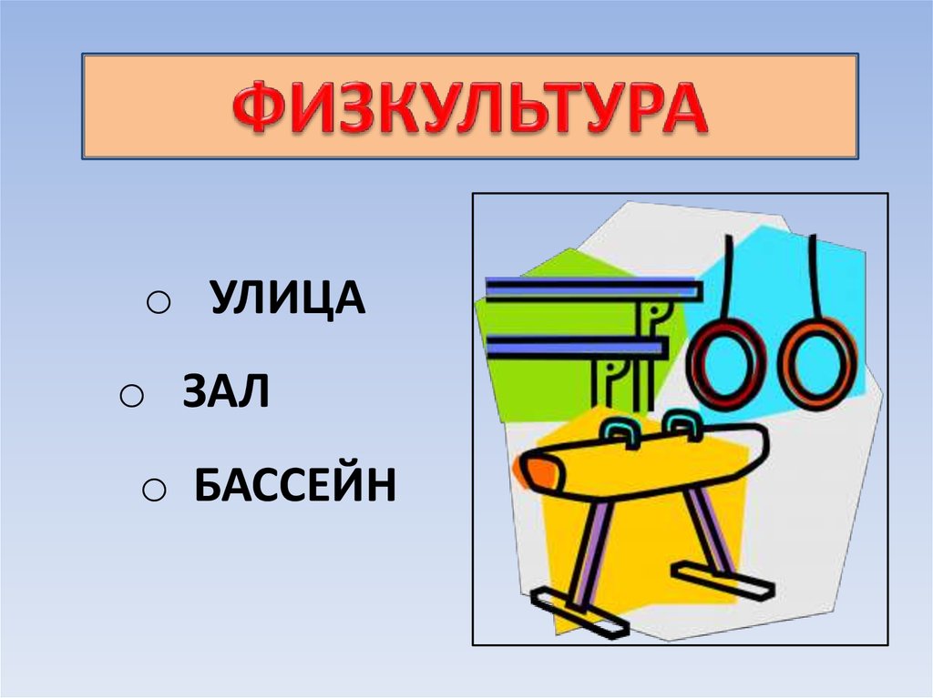 Физкультура: улица, зал, бассейн