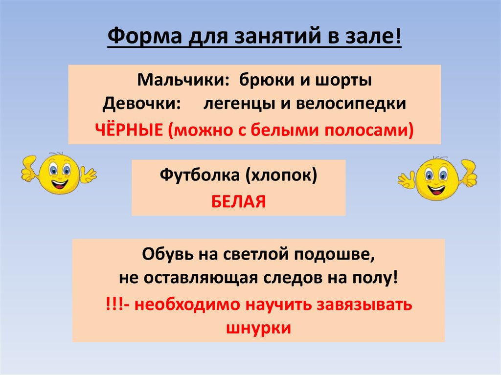 Форма для занятий на улицедолжна соответствовать погодным условиям!