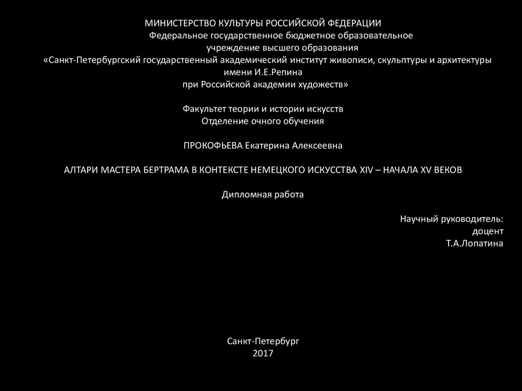 АЛТАРИ МАСТЕРА БЕРТРАМА В КОНТЕКСТЕ НЕМЕЦКОГО ИСКУССТВА XIV – НАЧАЛА XV ВЕКОВ