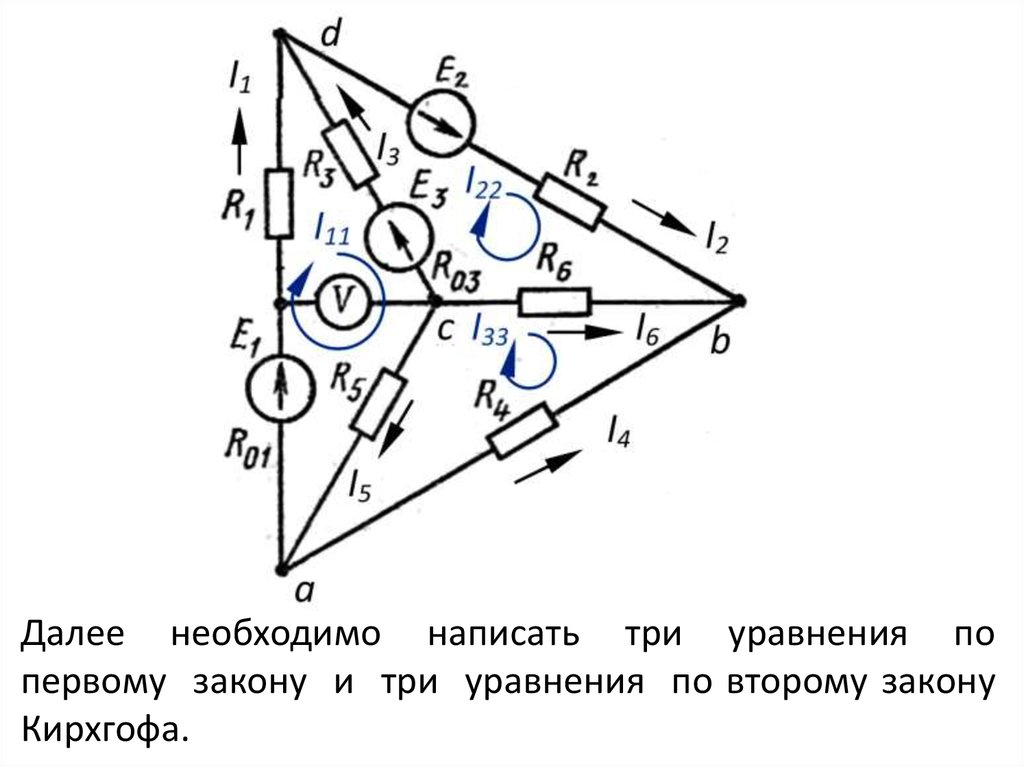 Далее необходимо написать три уравнения попервому закону и три уравнения по второму закону