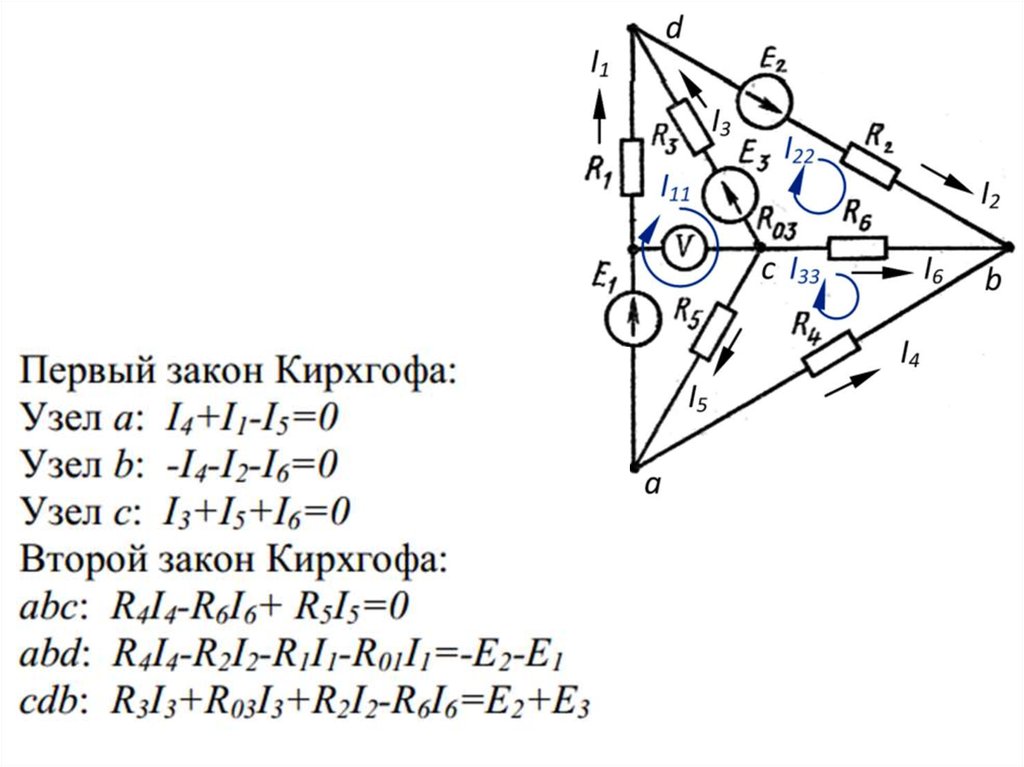 Для определения токов в контуре,рассмотренного выше, вводим: