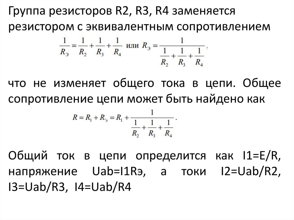 Группа резисторов R2, R3, R4 заменяетсярезистором с эквивалентным сопротивлением