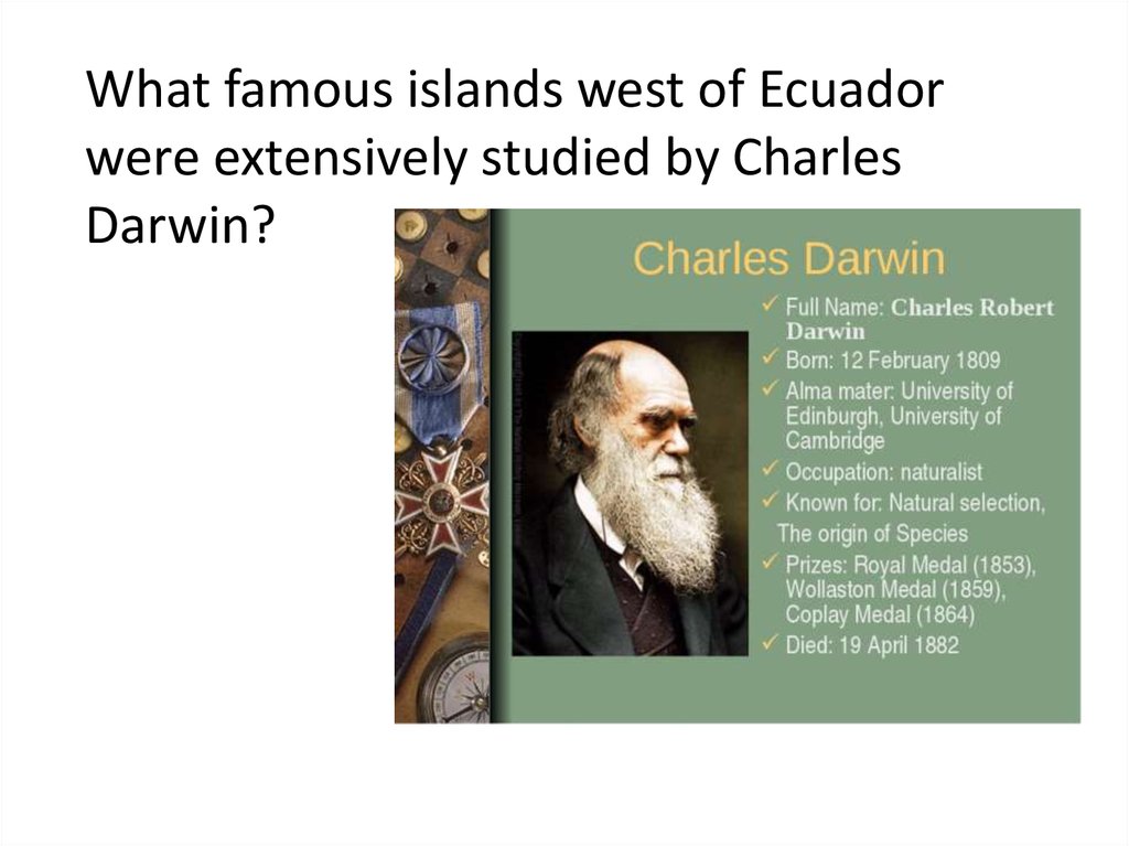 What famous islands west of Ecuadorwere extensively studied by Charles