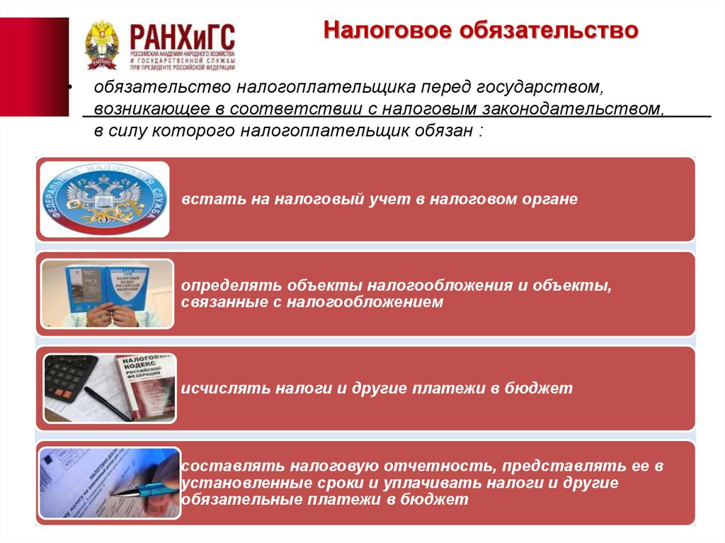 Налоговое обязательствообязательство налогоплательщика перед государством,