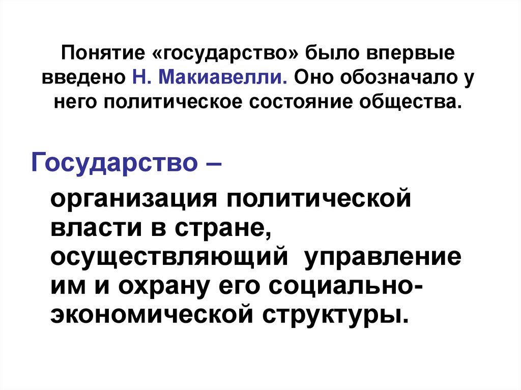 Понятие «государство» было впервыевведено Н. Макиавелли. Оно обозначало у