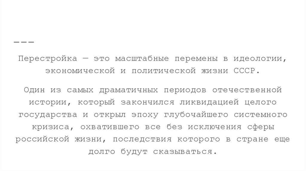 Что такое “Перестройка”?Перестройка — это масштабные перемены в идеологии,