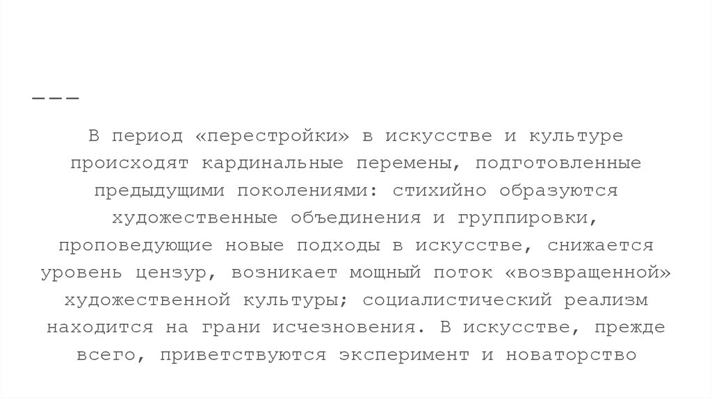 В период «перестройки» в искусстве и культуре