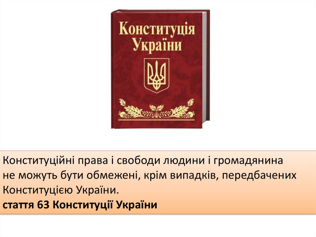 Конституційні права і свободи людини і громадянинане можуть бути обмежені, крім випадків, передбачених