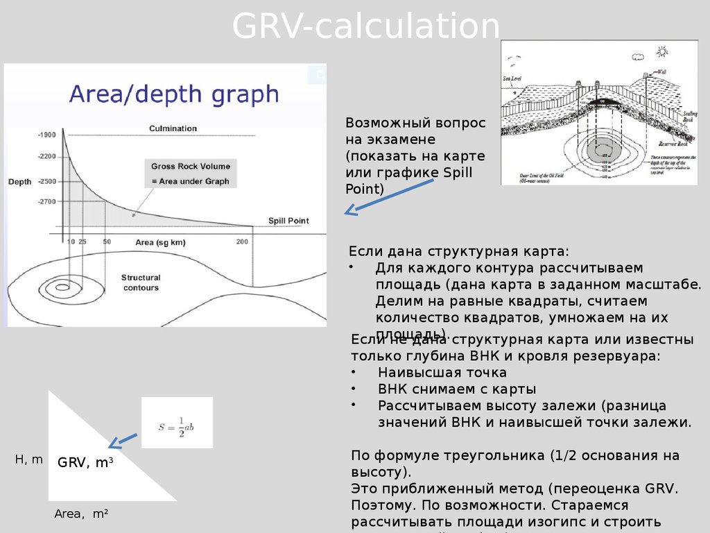 Рассчитаем GRV для пласта R (см. ф-лу прямоугольного треугольника).