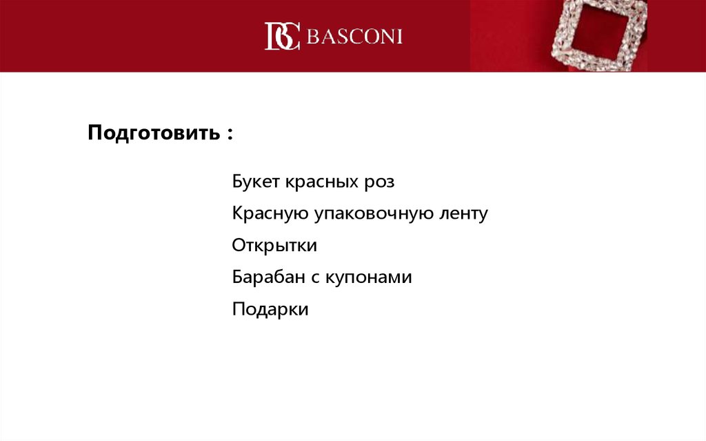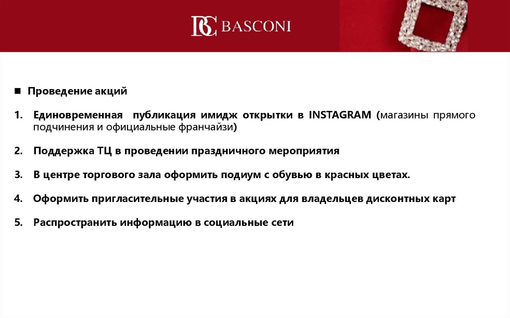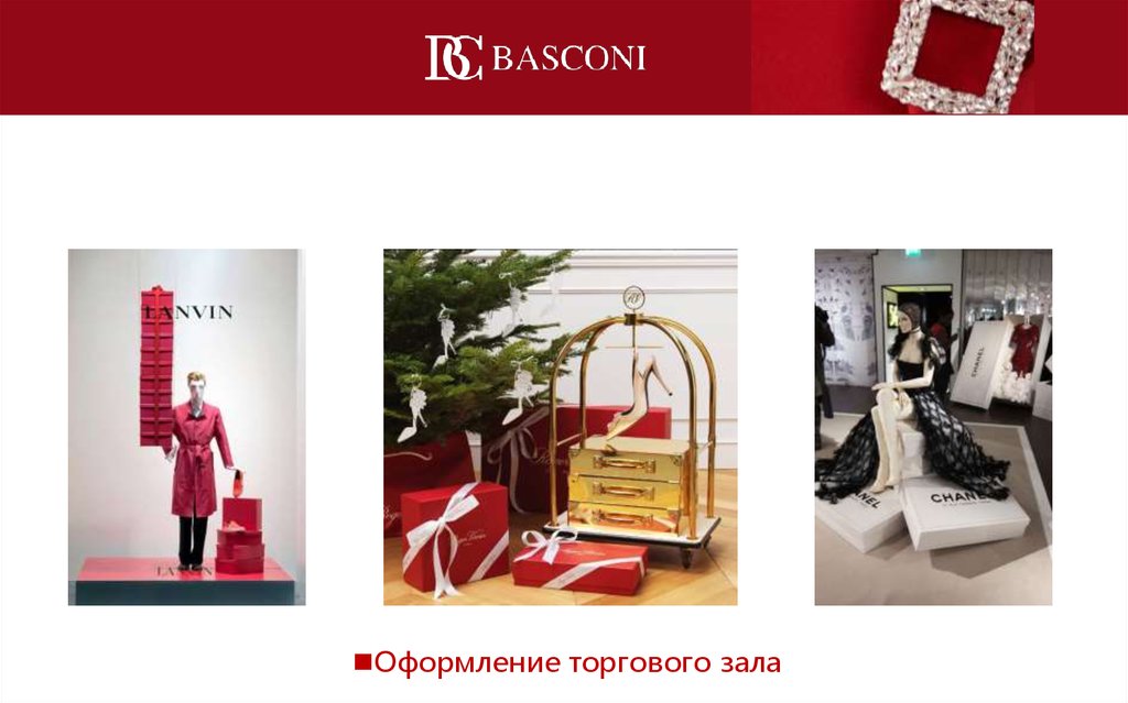 В центре торгового зала оформить подиум с обувью в красных цветах.