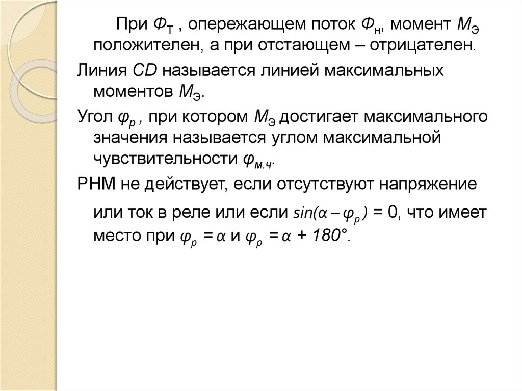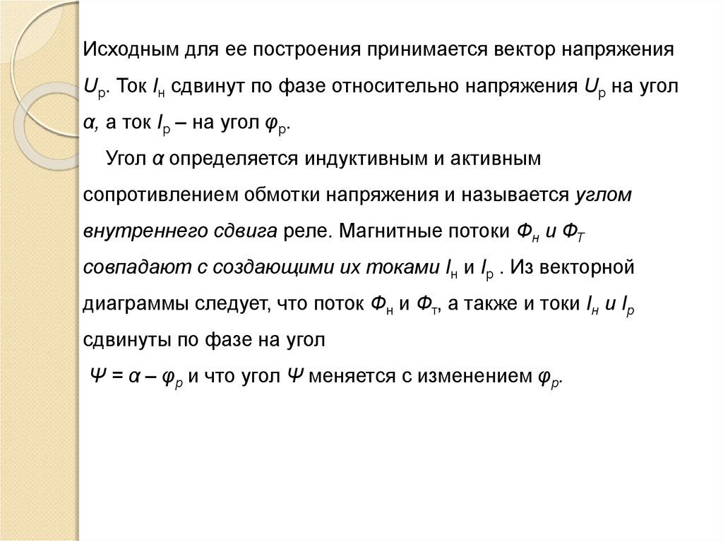 или ток в реле или если sin(α – φр ) = 0, что имеет