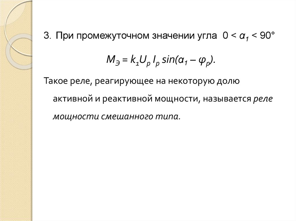 3. При промежуточном значении угла 0 < α1 < 90°МЭ = k1Uр Iр sin(α1 – φр).