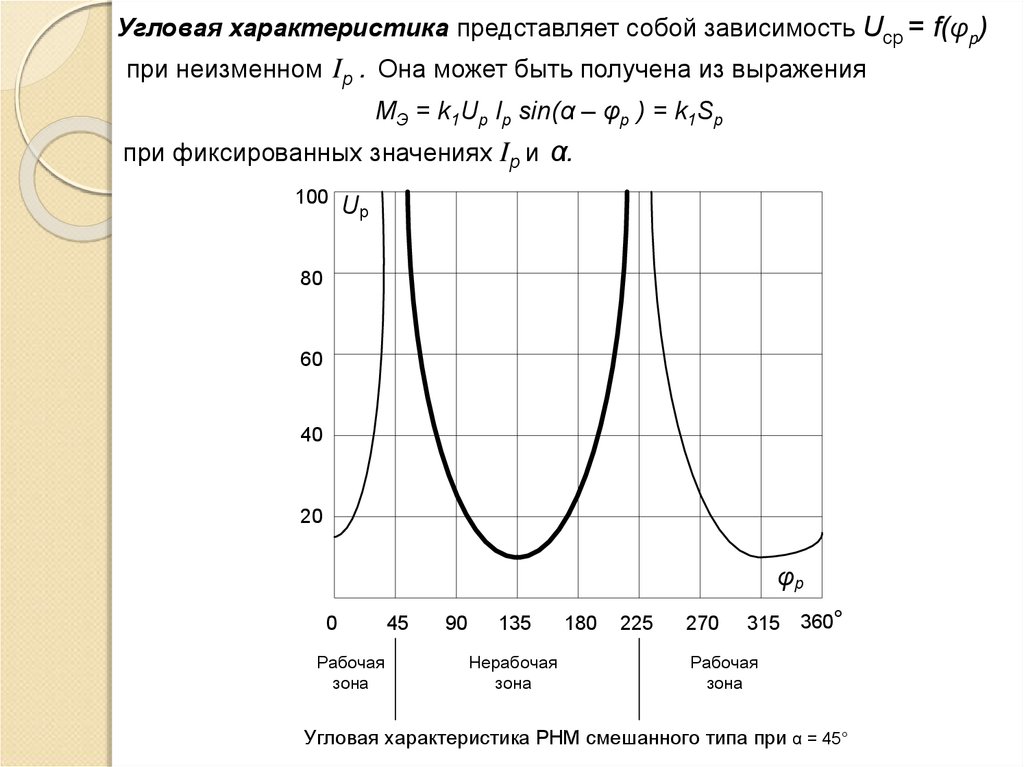 Угловая характеристика представляет собой зависимость Uср = f(φр)при неизменном Ip . Она может быть получена из выражения