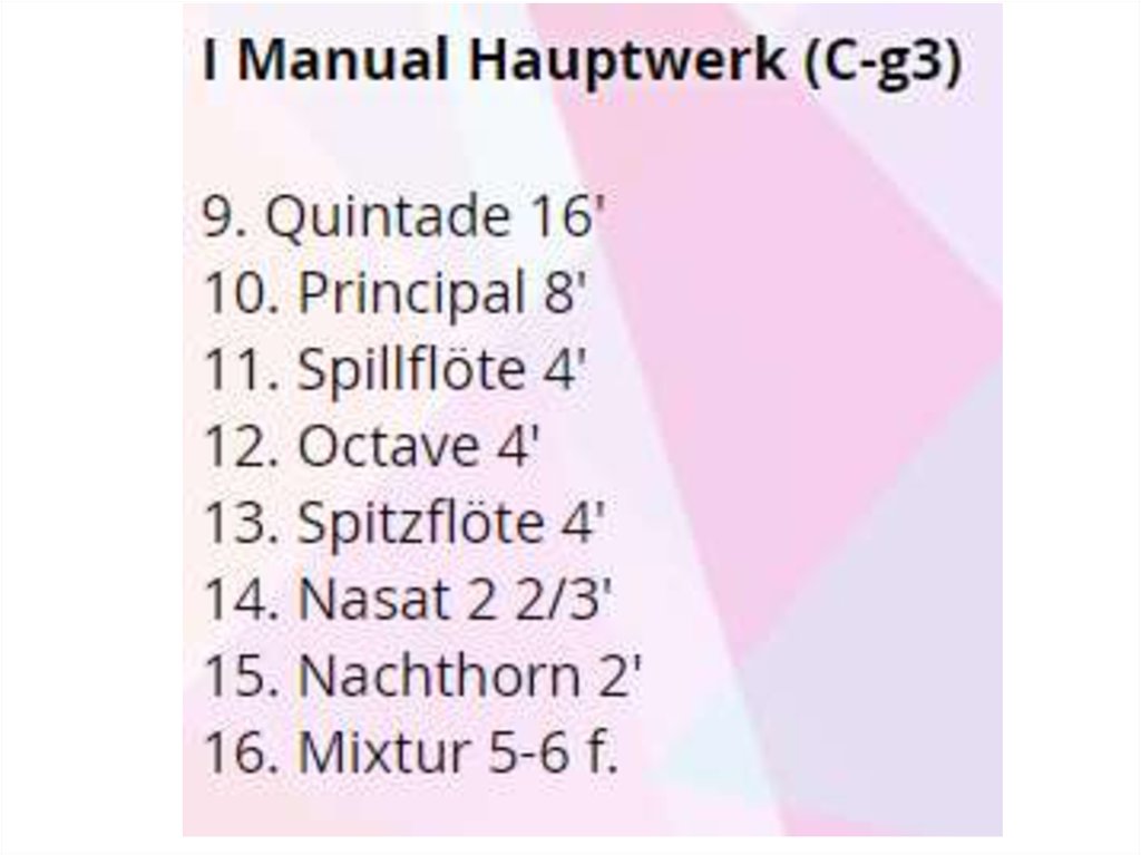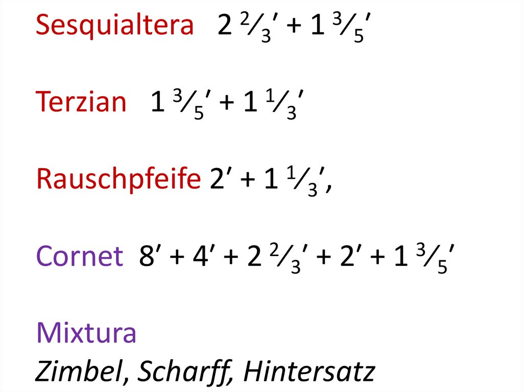 Cornet 8′ + 4′ + 2 2⁄3′ + 2′ + 1 3⁄5′