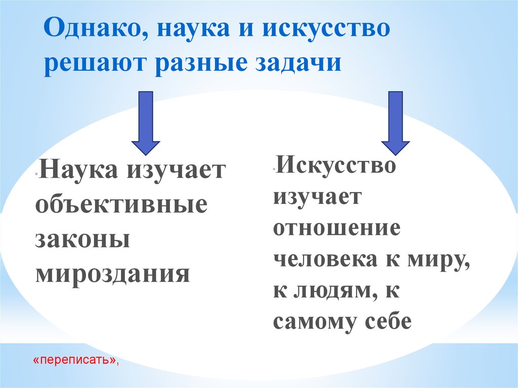 Однако, наука и искусстворешают разные задачи