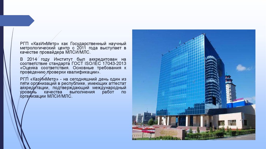 РГП «КазИнМетр» как Государственный научныйметрологический центр с 2011 года выступает в