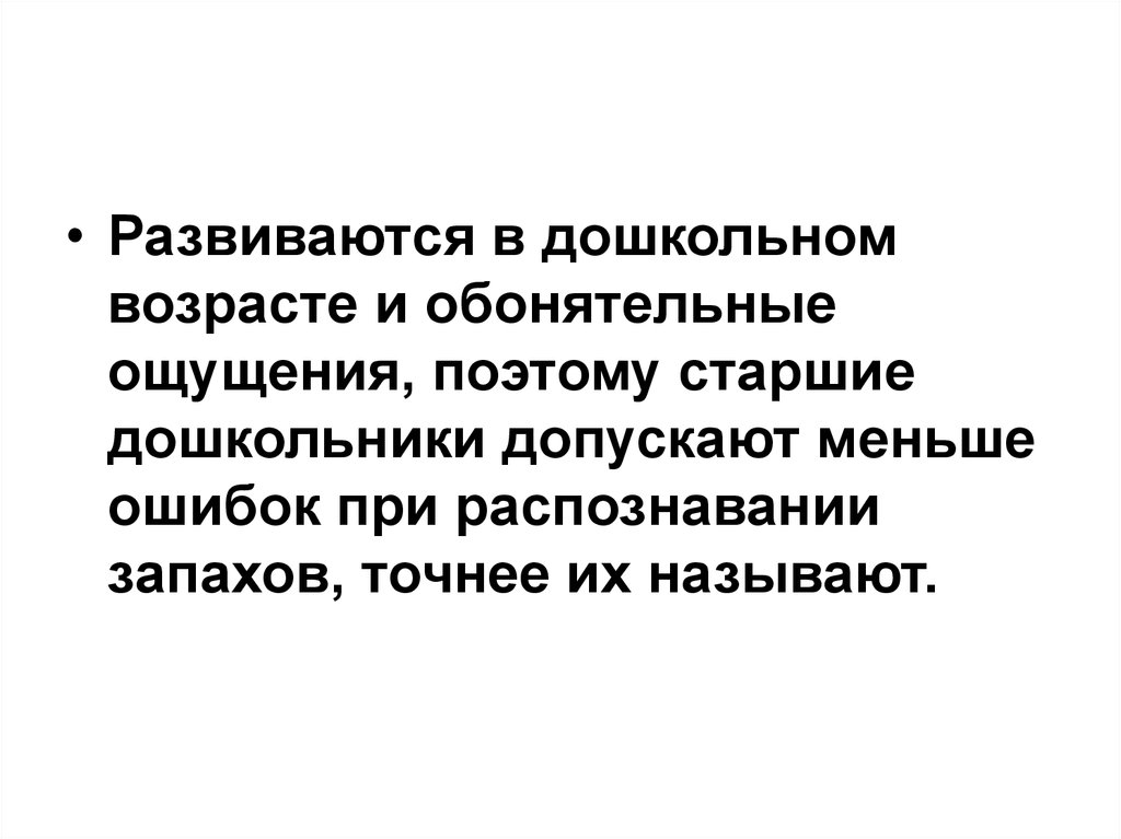 • Развиваются в дошкольномвозрасте и обонятельные