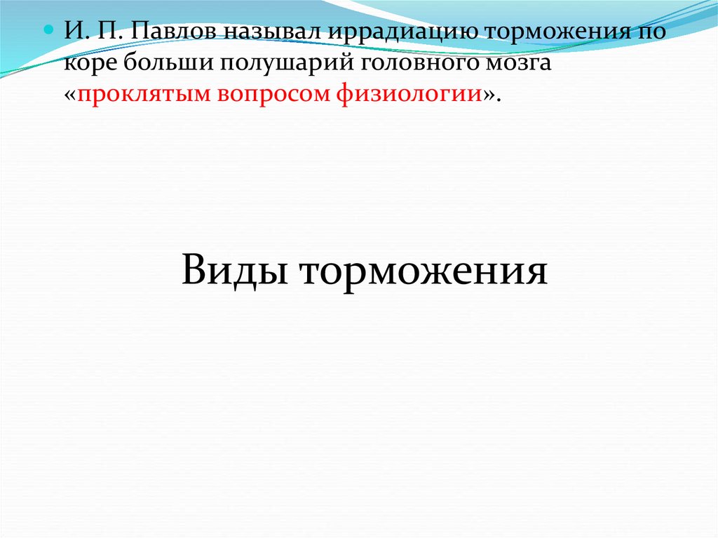 Торможение —активный нервныйпроцесс, вызываемый возбуждением и