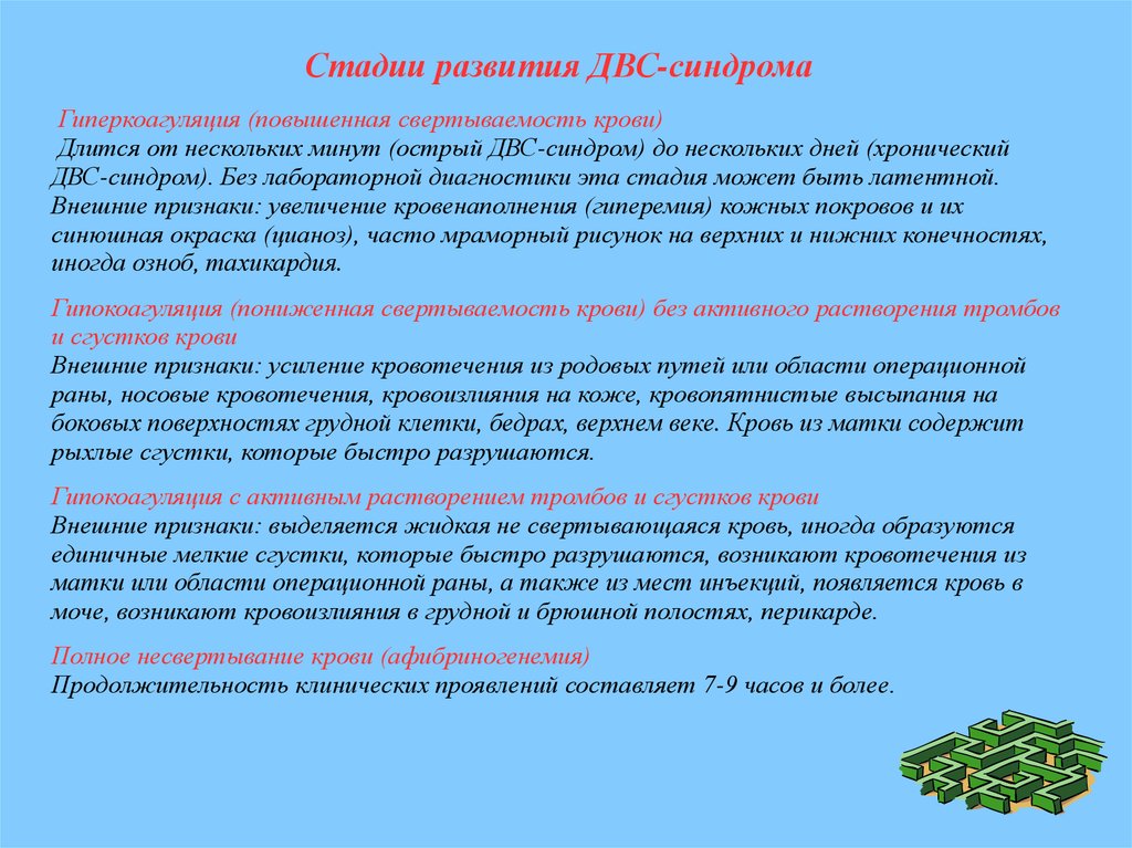Стадии развития ДВС-синдромаГиперкоагуляция (повышенная свертываемость крови)