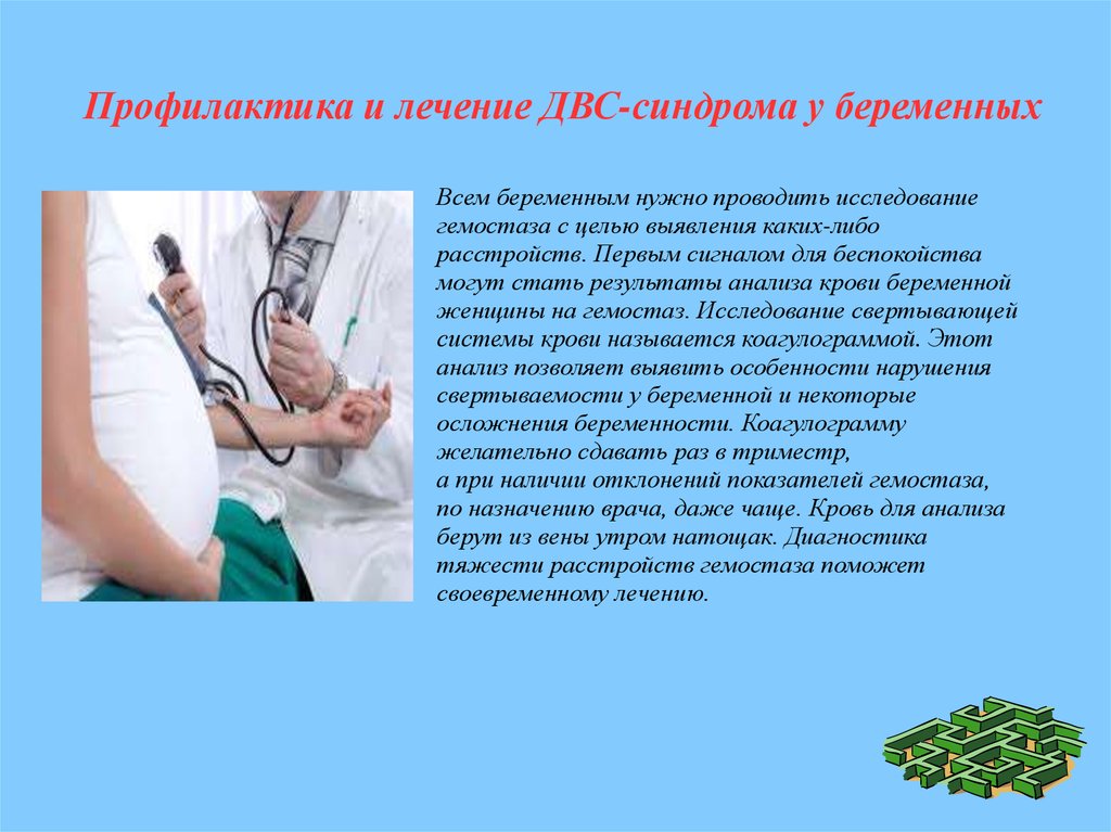 Профилактика и лечение ДВС-синдрома у беременныхВсем беременным нужно проводить исследование