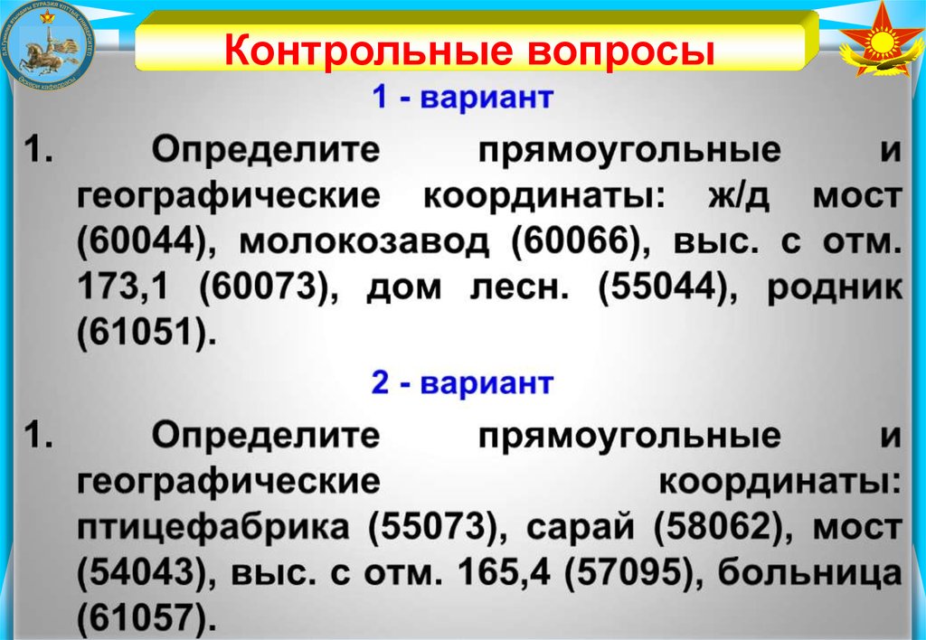 Контрольные вопросы5. В войсковой практике, вместо градусной системы угловых мер применяется артиллерийская.