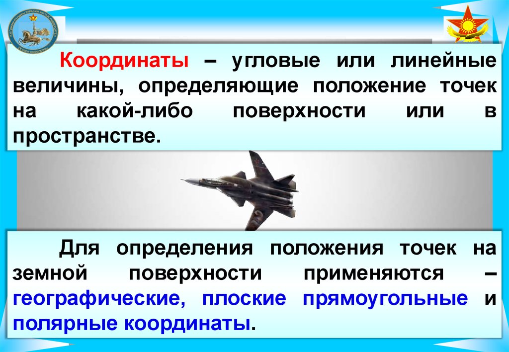 Координаты – угловые или линейныевеличины, определяющие положение точек
