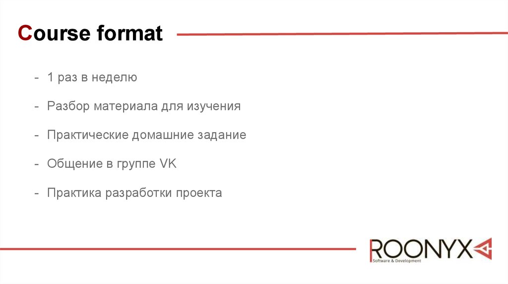 Course format- 1 раз в неделю