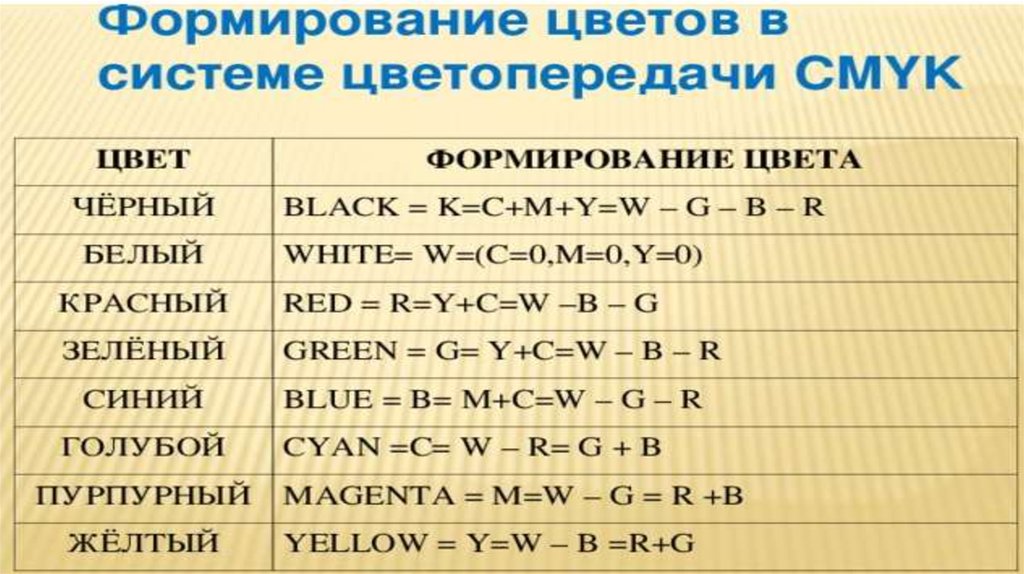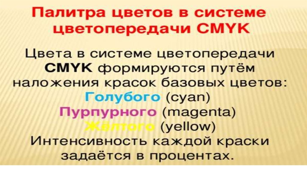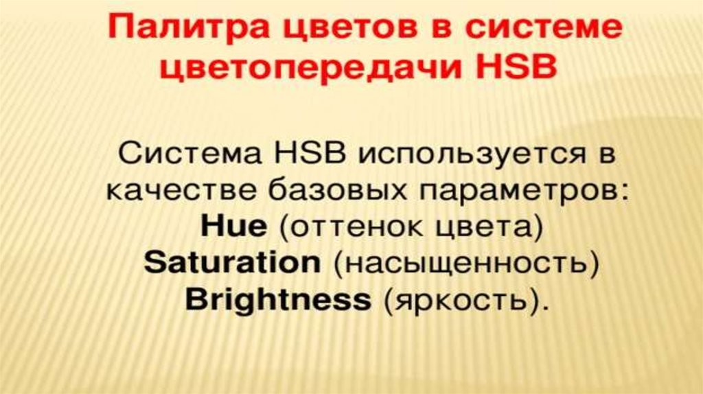 Палитры цветов в системах цветопередачи RGB, CMYK и HSB