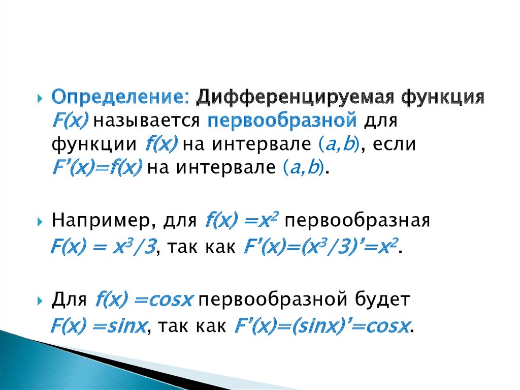такую функцию F(x), чтобы F’(x) = f(x).