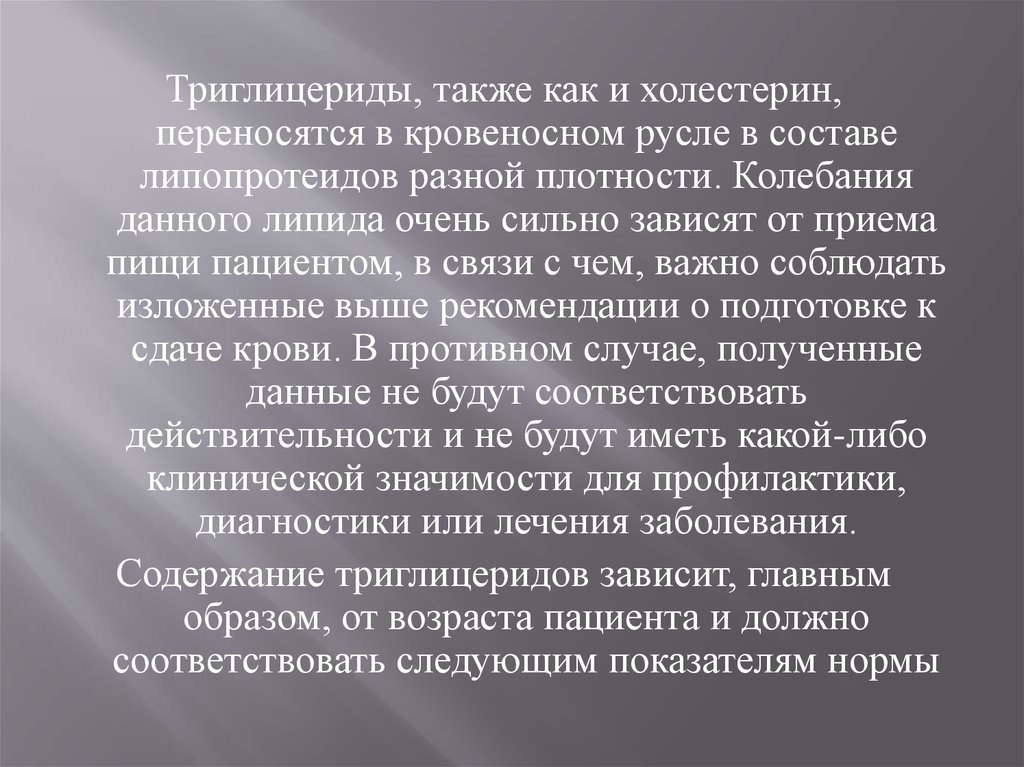 Содержание триглицеридов зависит, главным