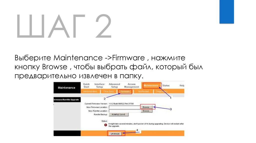 ШАГ 2Выберите Maintenance ->Firmware , нажмите