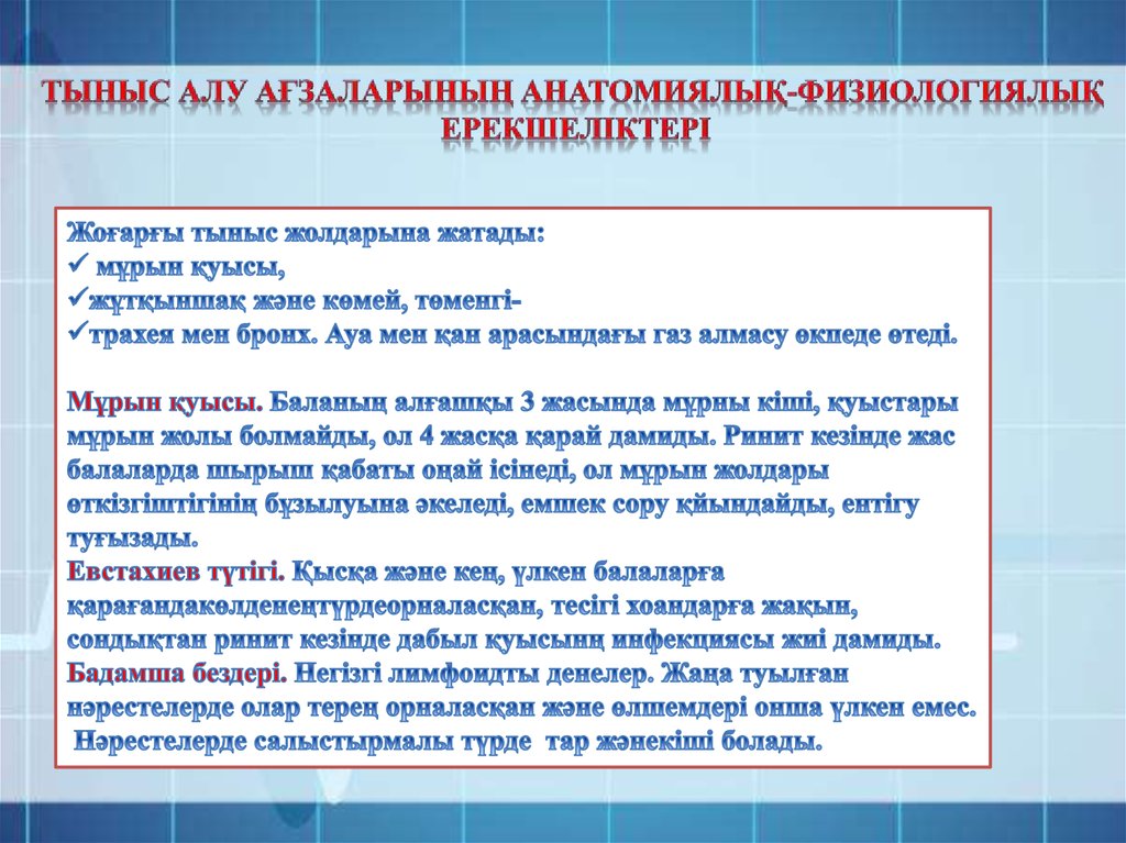 Балалардың ағзалары мен жұйелері дамуының анатомиялық жөне физиологиялық ерекшеліктері
