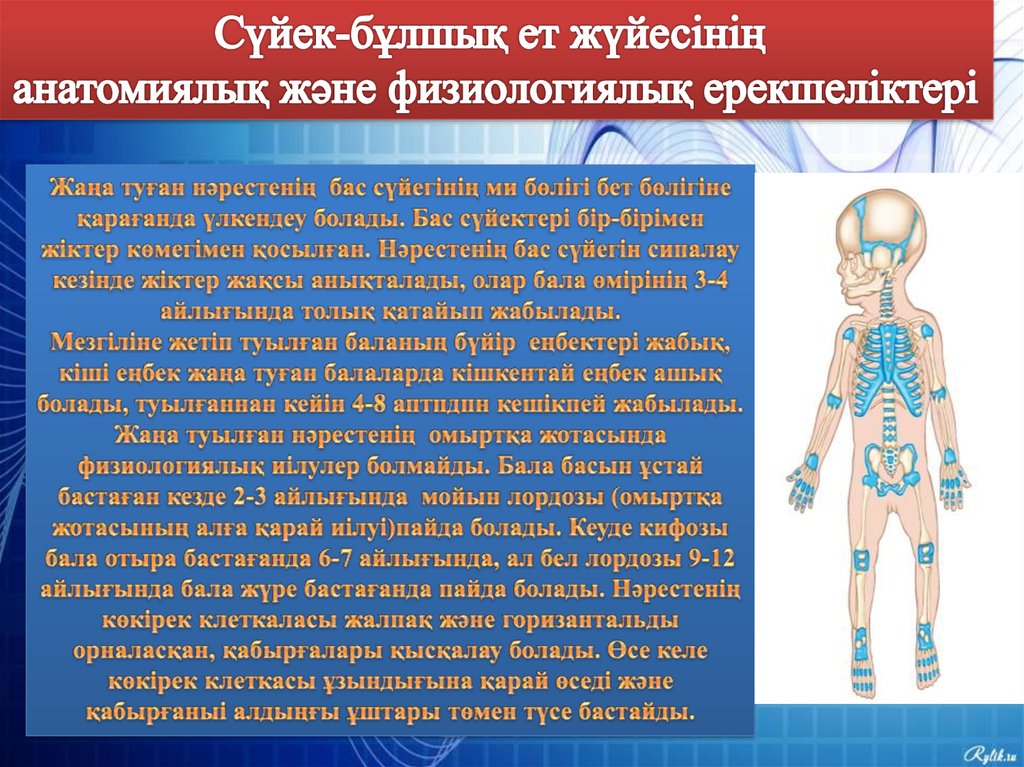 Балалардың ағзалары мен жұйелері дамуының анатомиялық жөне физиологиялық ерекшеліктері